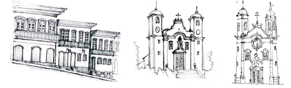 Ilustrações para projetos de arquitetura e croquis urbanos