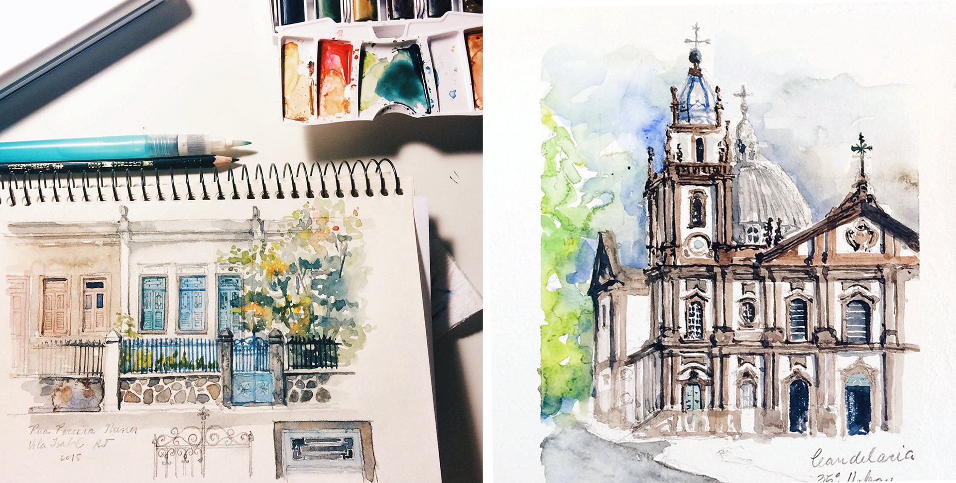 Aquarelas da Casa da Glória e da Pedra do Sal | Rio de Janeiro