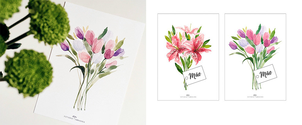 Aquarelas criadas com exclusividade para o Estúdio Embaúba